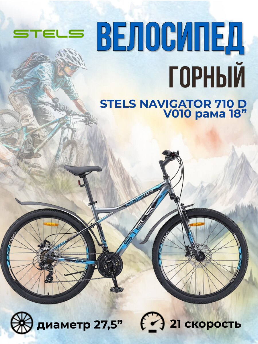 Велосипед горный STELS Navigator-710 D 27.5" рама 18" V010, серый/чёрный/серебристый