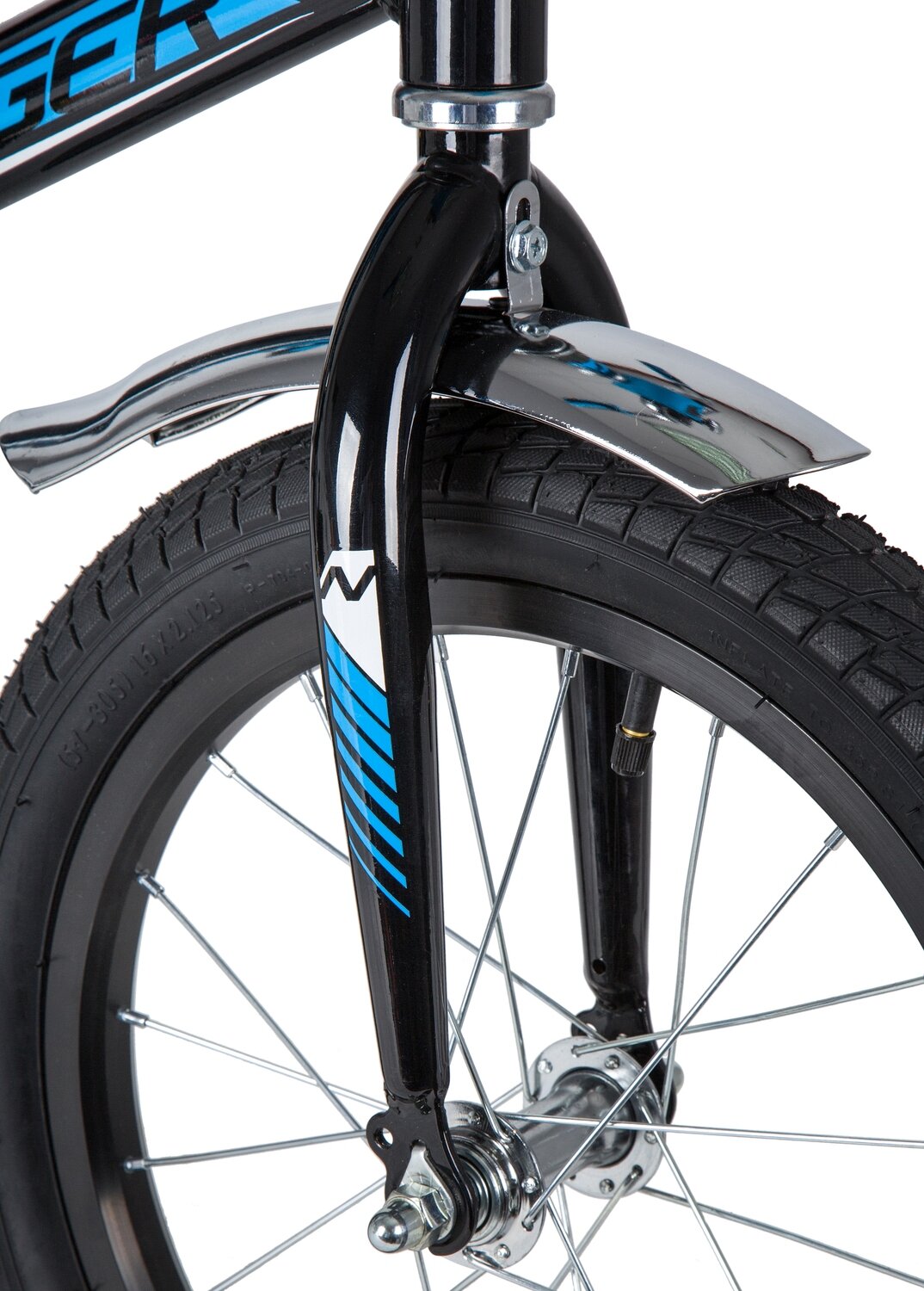 Велосипед NOVATRACK 16" DODGER, черный, алюм, тормоз нож., короткие крылья, полная защита цепи