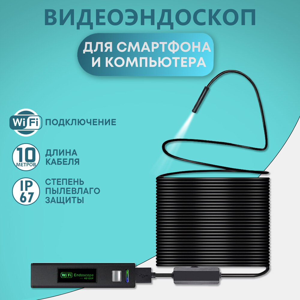 10 цен на Эндоскоп для смартфона Андроид, Айфон и компьютера водонепроницаемый InnoZone 1200P 8мм Wi-Fi, гибкая камера, подсветка, длина 10м
