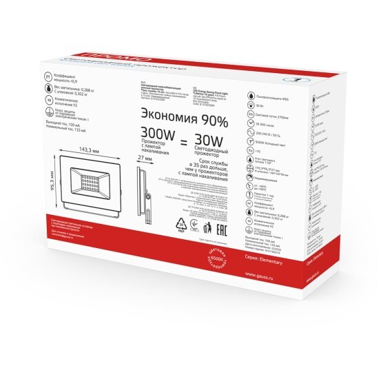 Отзывы на Прожектор Gauss Elementary 30W 2100lm IP65 6500К черный промо 1/10