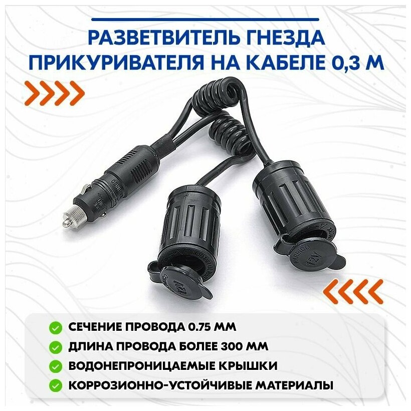 Разветвитель гнезда прикуривателя на кабеле 0,3 м информация: