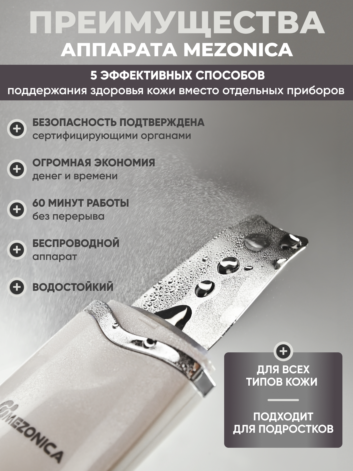 Mezonica Аппарат ультразвуковой чистки лица, скрабер + Cleansing Гель для дезинкрустации/для чистки лица