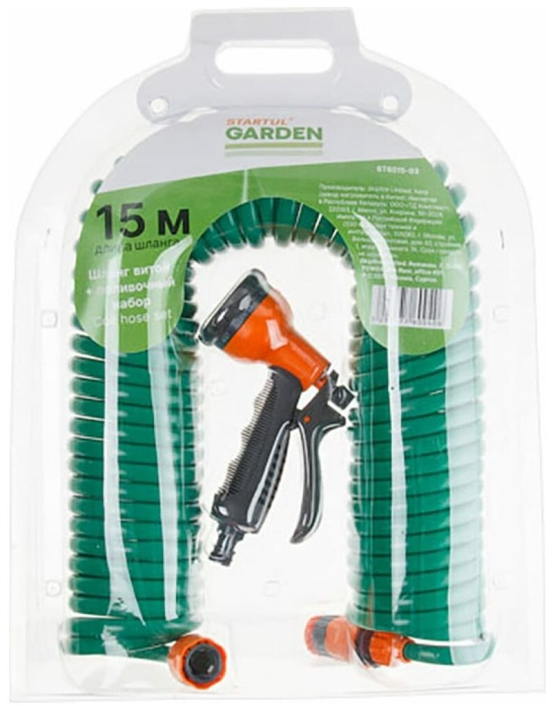 Шланг витой 15м + поливочный набор STARTUL GARDEN (ST6015-03) (спиральный) информация: