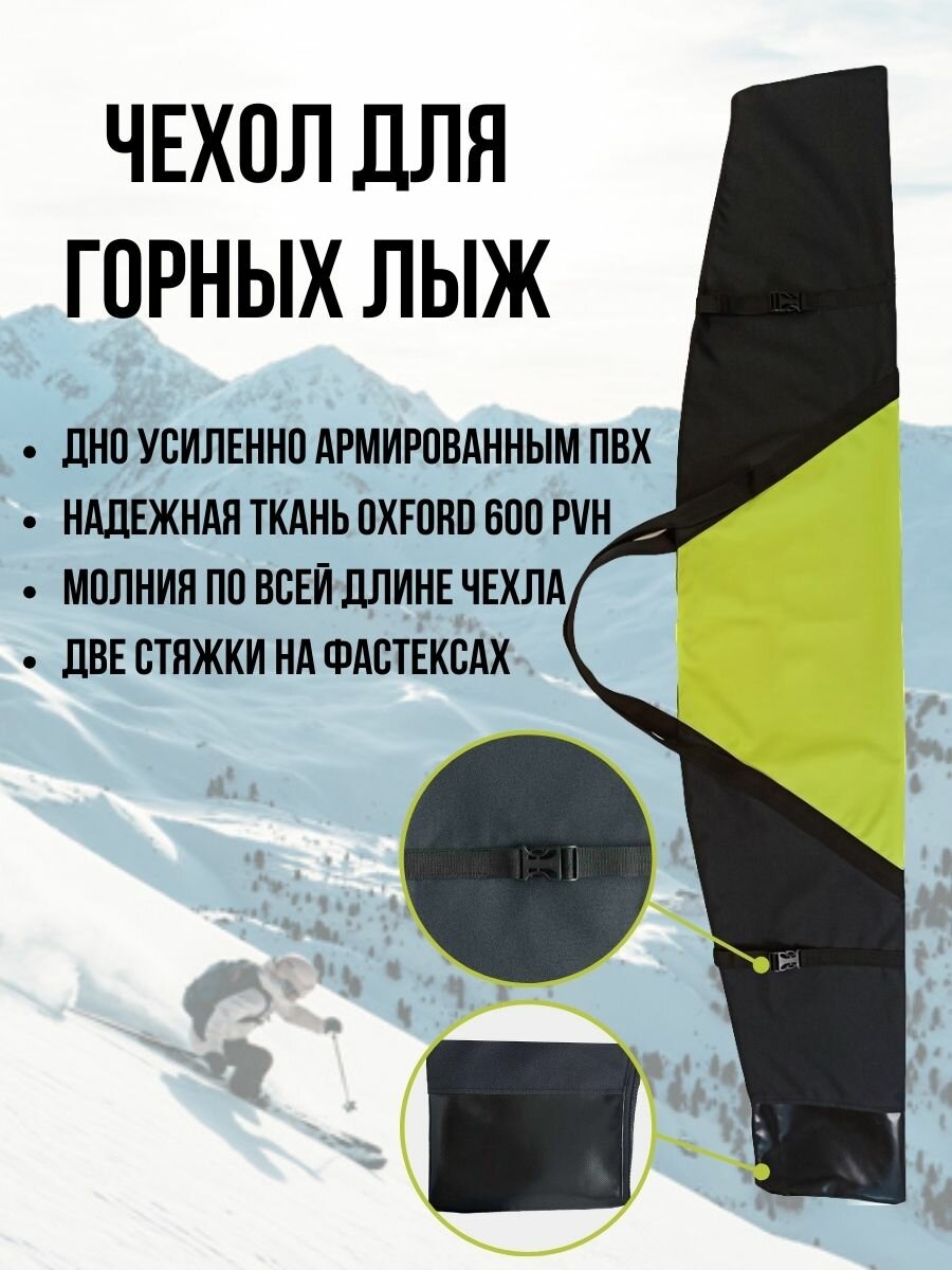 Чехол для горных лыж EKUD (р.210) (салатово-чёрный) информация: