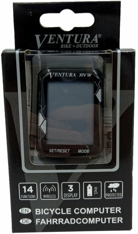 Отзывы на Велокомпьютер 5-244361 беспроводной 14 функций 3-х строчный дисплей, влагозащитный, столик с изменяемым углом наклона, черный VENTURA XIV W