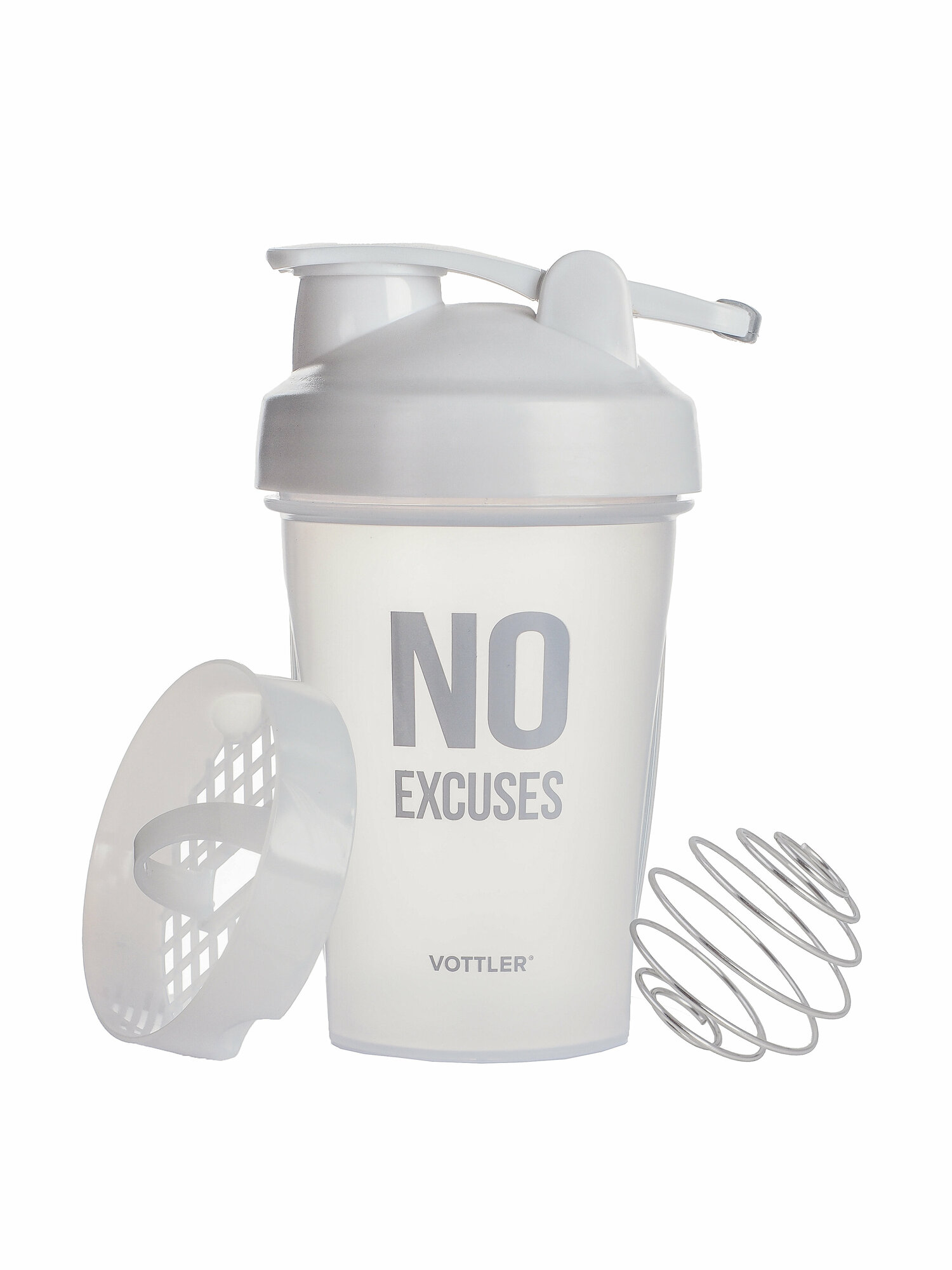 Шейкер спортивный бутылка VOTTLER No excuses 500 мл белый с шариком и сеткой информация: