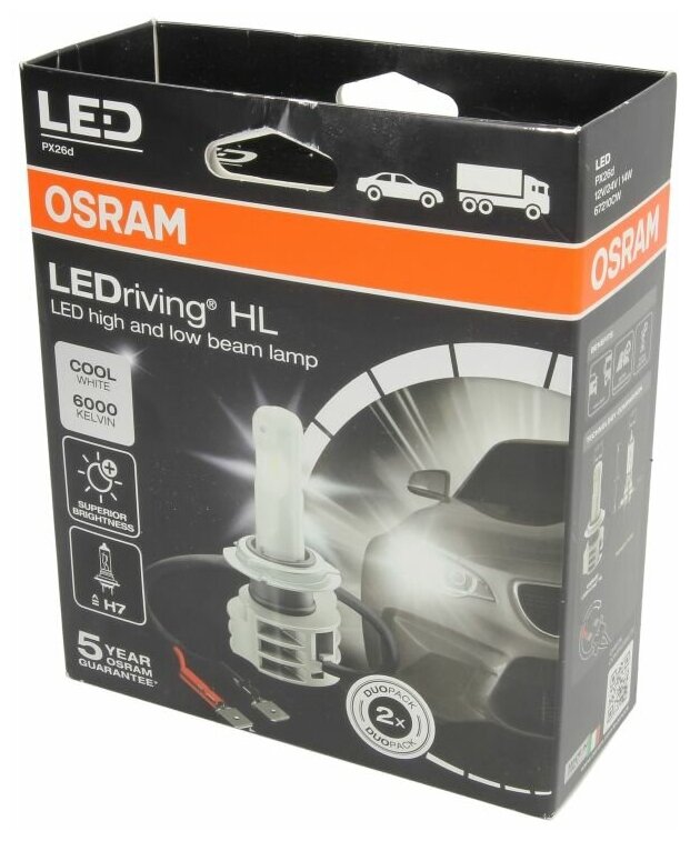 Отзывы на OSRAM 67210CW Лампа светодиодная H7 12V/24V 14W LEDriving к-кт 2шт