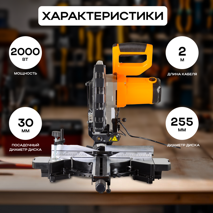 Торцовочная пила с протяжкой вихрь ПТ-255А, 2000 Вт