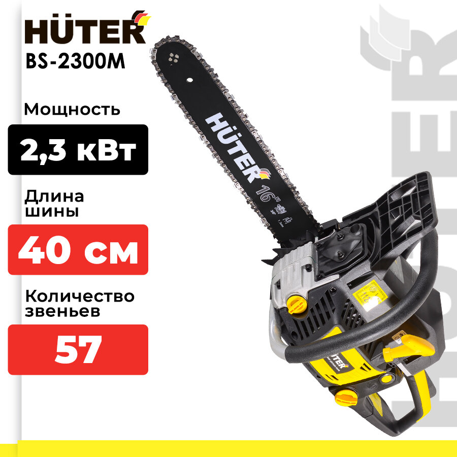 Бензопила BS-2300М Huter, длина шина 40см, 3.1 л. с, тормоз цепи 8 571 ₽
