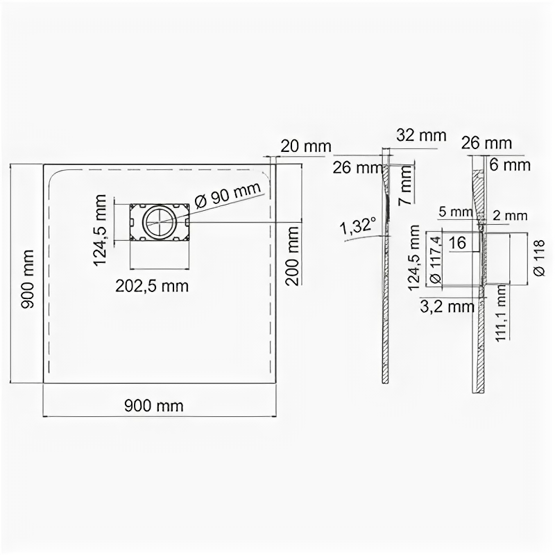 Душевой поддон WasserKRAFT Elbe 900х900х26 74T03 (сифон и декоративная накладка в комплекте)