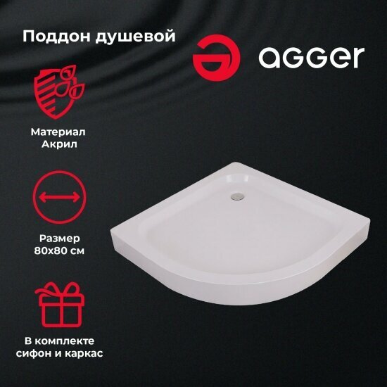 Поддон для душа акриловый Agger A01-080TCR/T радиальный 7 990 ₽