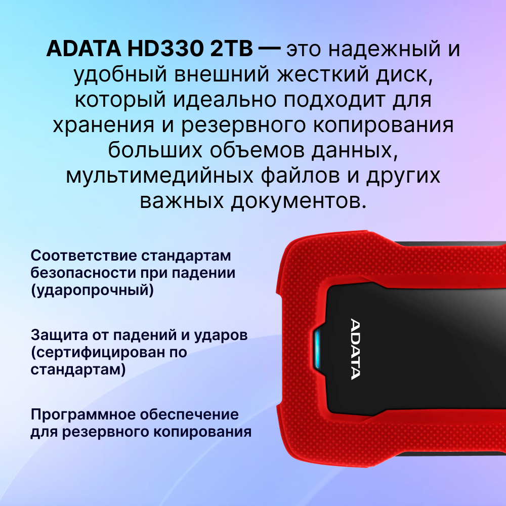 Внешний диск HDD A-Data DashDrive Durable HD330, 2ТБ, красный [ahd330-2tu31-crd] информация:
