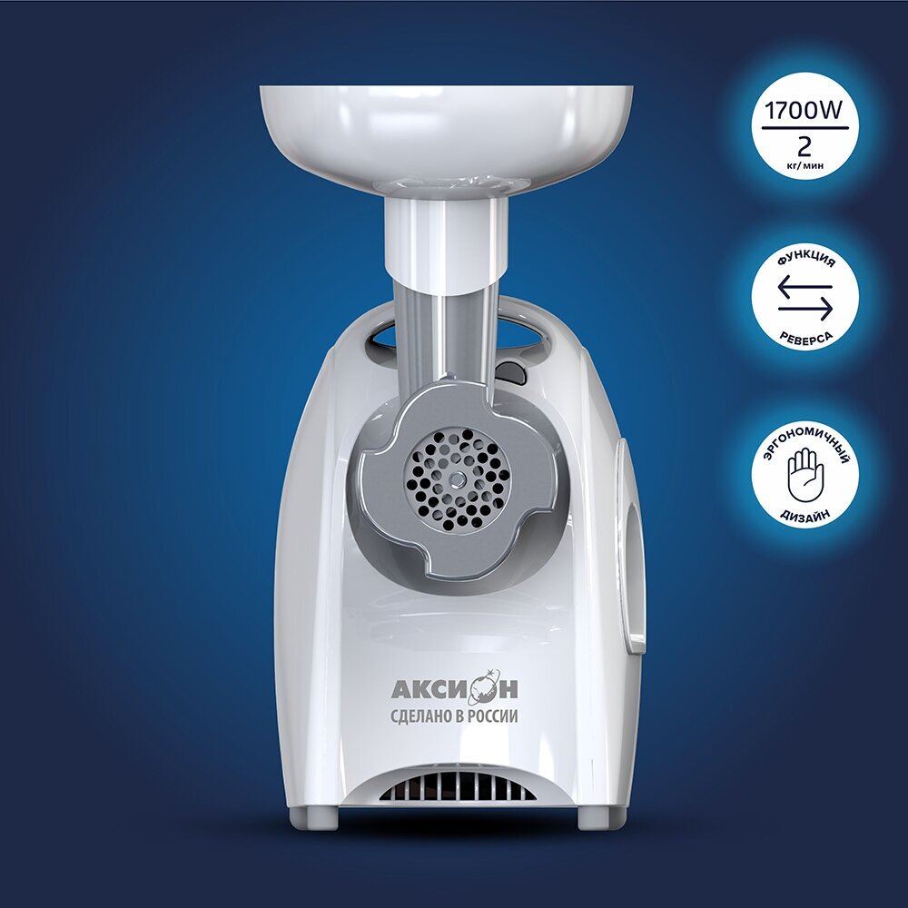 Мясорубка «Аксион», М 33.01, пластик, 1,7 кг/мин, 1 диск, защита от перегрузки