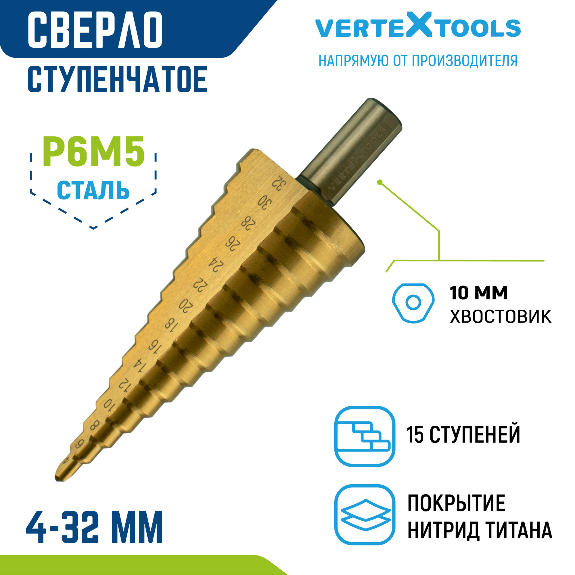 10 цен на Сверло ступенчатое по металлу Vertextools 4х32, шаг 2мм