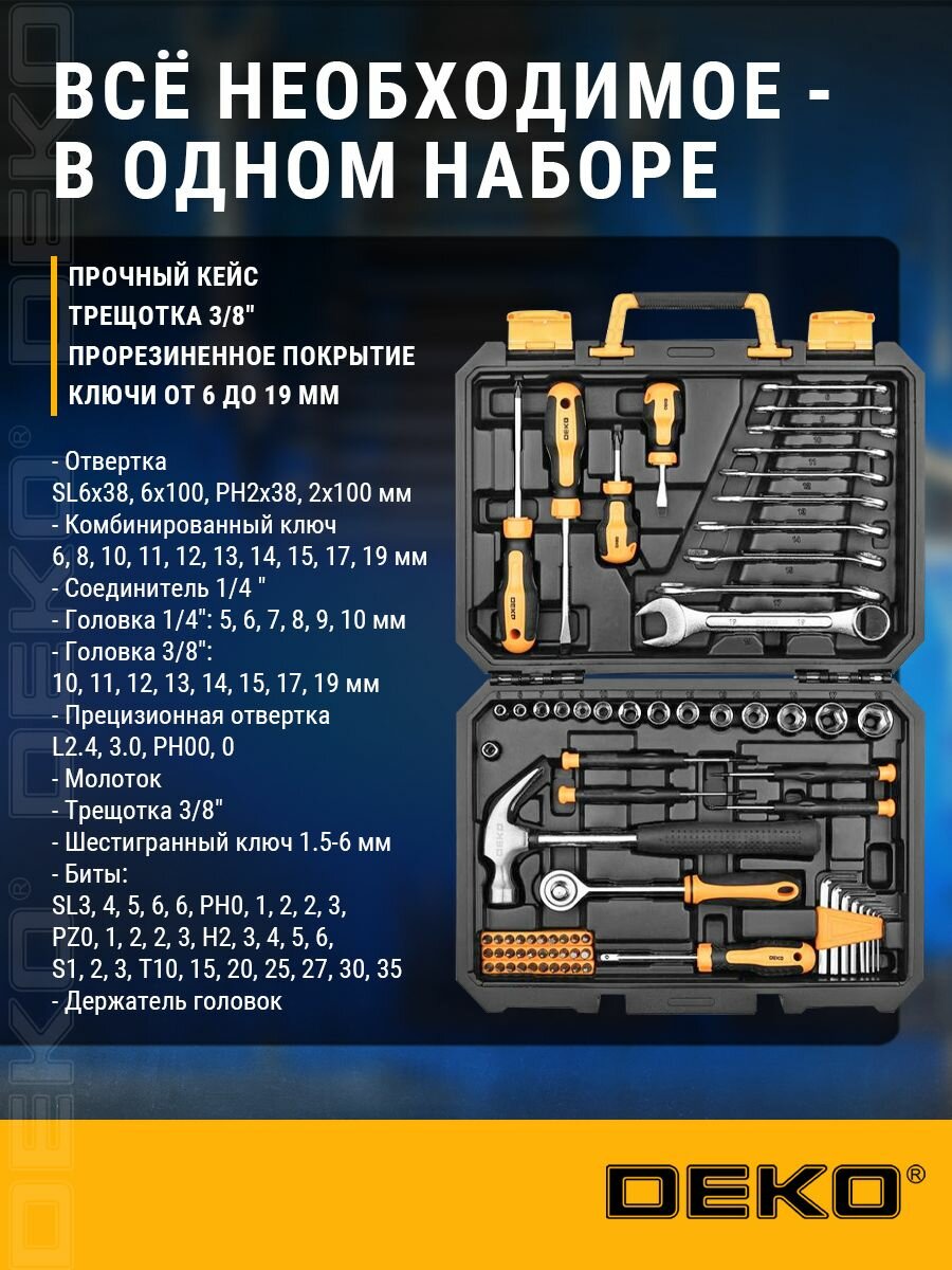 10 цен на Универсальный набор инструмента для дома и авто в чемодане DEKO DKMT74 (74 предмета)