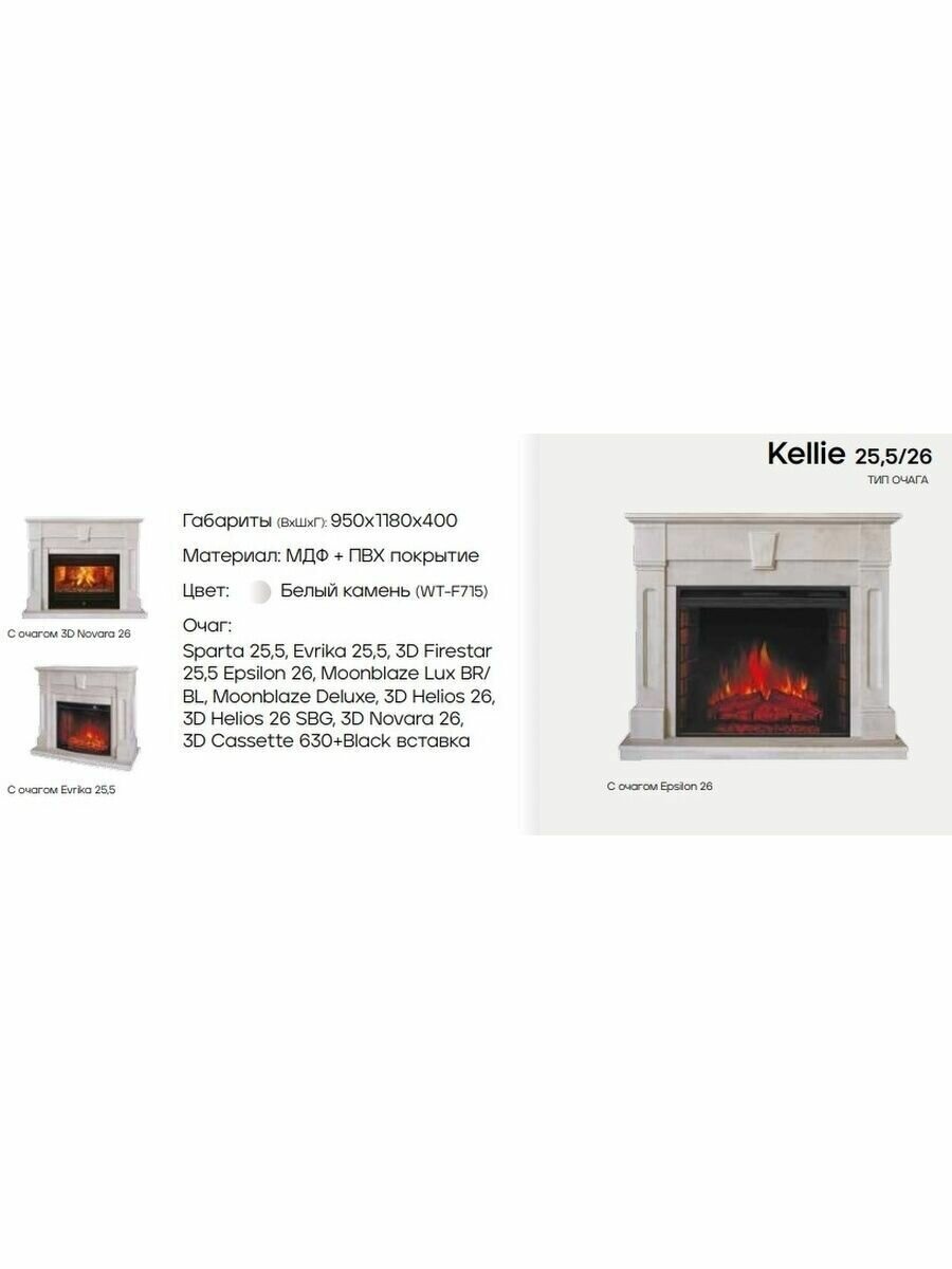 Электрокамин RealFlame Kellie 25.5/26 WT-F715 с очагом Moonblaze Lux Brass информация: