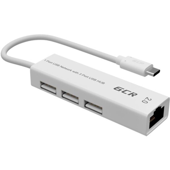 10 цен на Разветвитель GCR USB 3.1 Type C -> Ethernet RJ-45 F Lan Card + USB 2.0-разветвитель на 3 порта, сетевой адаптер, белый, -UC2CL02