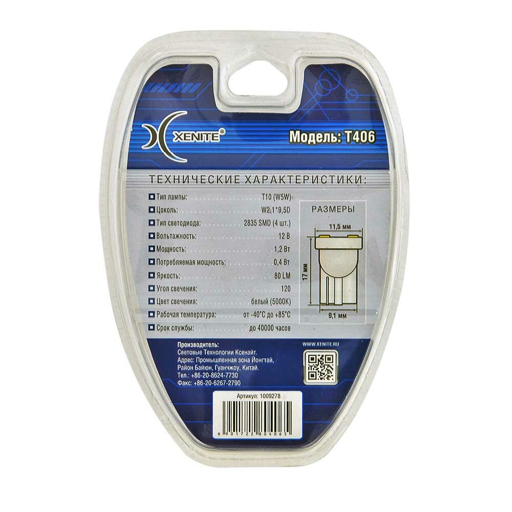 XENITE Автомобильная лампа T 406 /12V/Т10 /W5W/Блистер 2 шт. 1009278 информация: