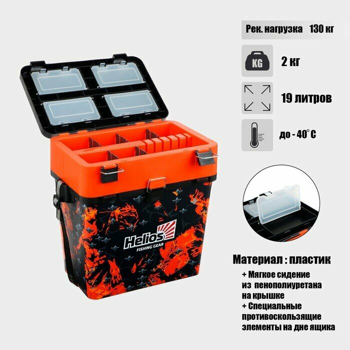 Ящик рыболовный зимний Helios SHARK, цвет оранжевый (HS-IB-19-SHO) информация:
