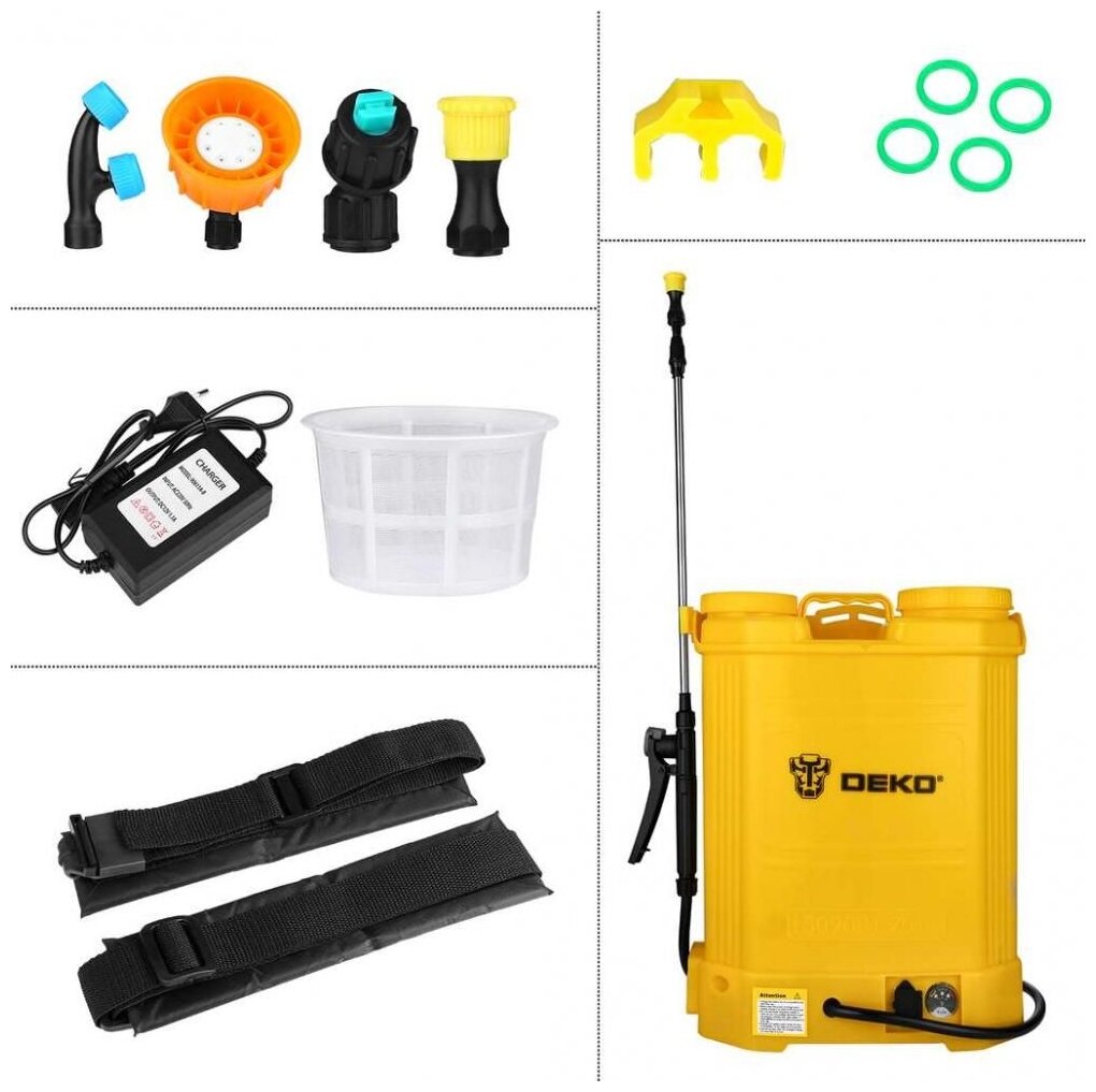 Опрыскиватель DEKO DKSP12, аккумуляторный, ранцевый, 14л, желтый [065-0951]
