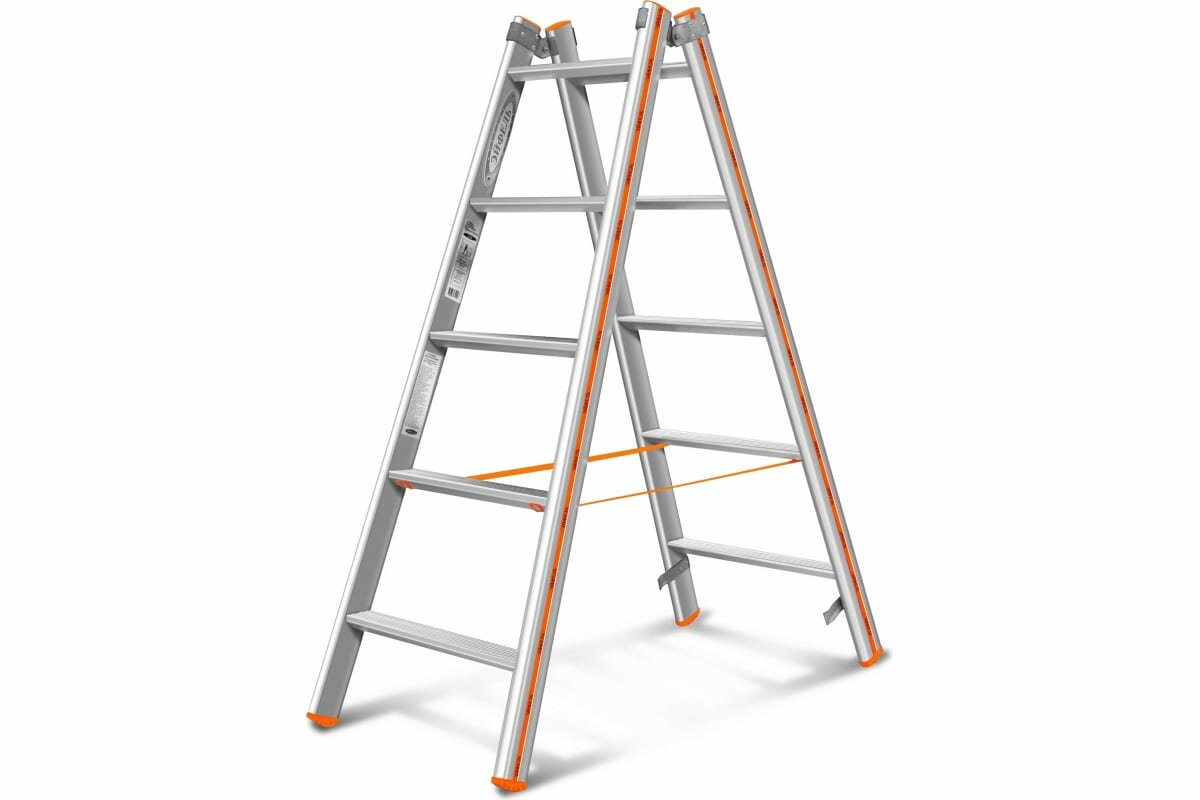 Стремянка стальная с алюминиевыми ступенями двухсторонняя Новая Высота NV 1140, 2х6 ступеней 80 мм