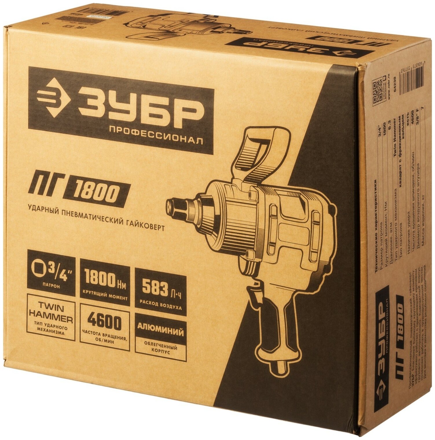 ЗУБР ПГ-1800, 3/4″, 1800 Н·м, ударный пневматический гайковерт, Профессионал (64230)