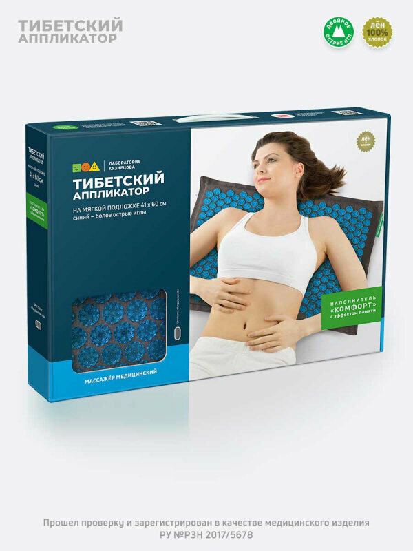 Отзывы на Массажный коврик лаборатория кузнецова Тибетский аппликатор (аппликатор Кузнецова) 41*60 см, комфорт, без магнитных вставок, чёрный лён, синий