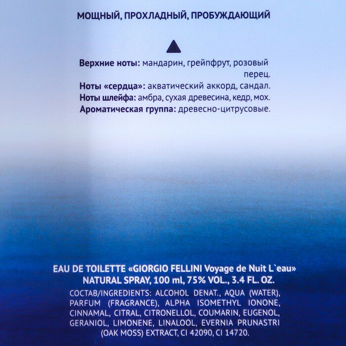 Туалетная вода мужская "Giorgio Fellini Voyage de Nuit L`eau", 100 мл 1 120 ₽