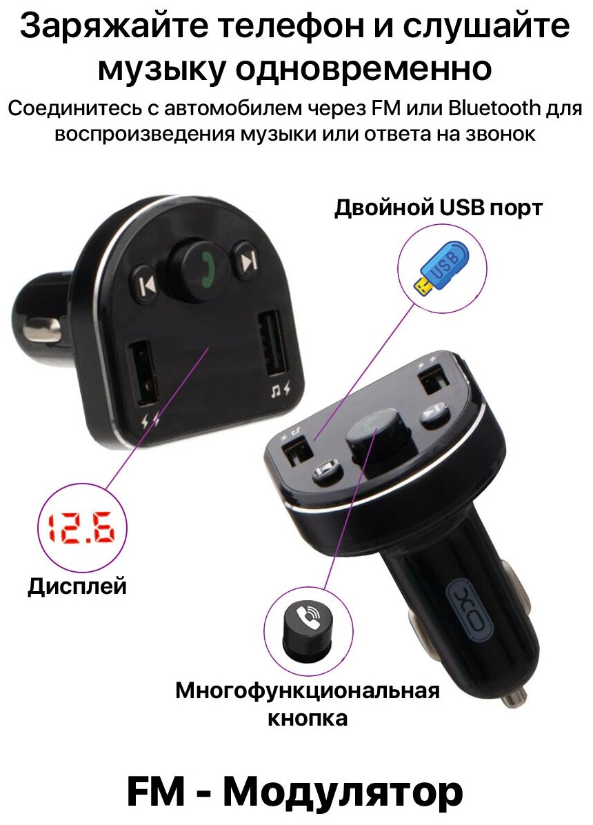 Модулятор FM XO BCC01 + Автомобильное зарядное устройство 2USB 3.1A LED display черный информация: