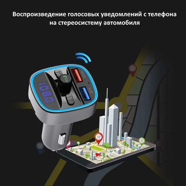 Орбита / TS-CAF120 FM-трансмиттер с bluetooth/микрофоном/ для автомобиля/ зарядник QC 3.0 для авто в прикуриватель