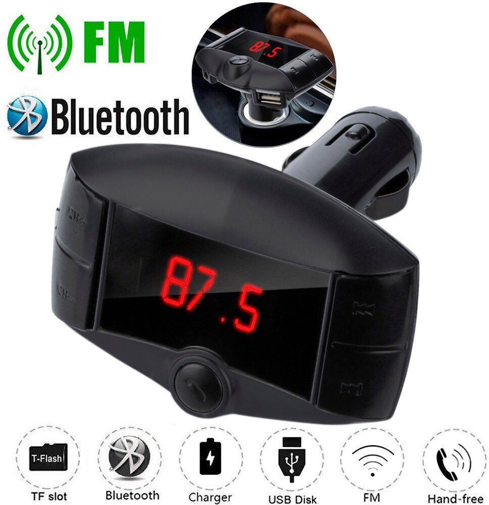 Автомобильный FM-трансмиттер S-21, черный, с дисплеем, Bluetooth, USB