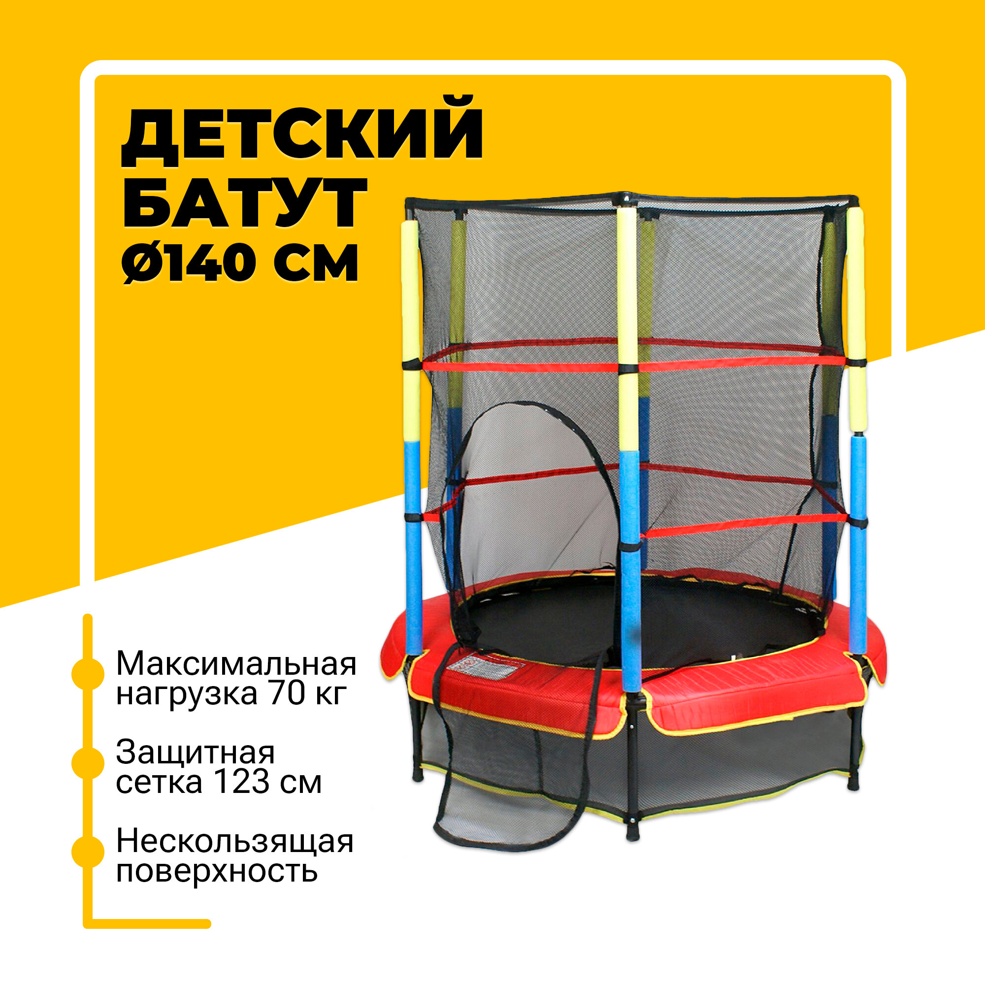 Батут каркасный детский, с защитной сеткой, красный, диаметр 140 см информация: