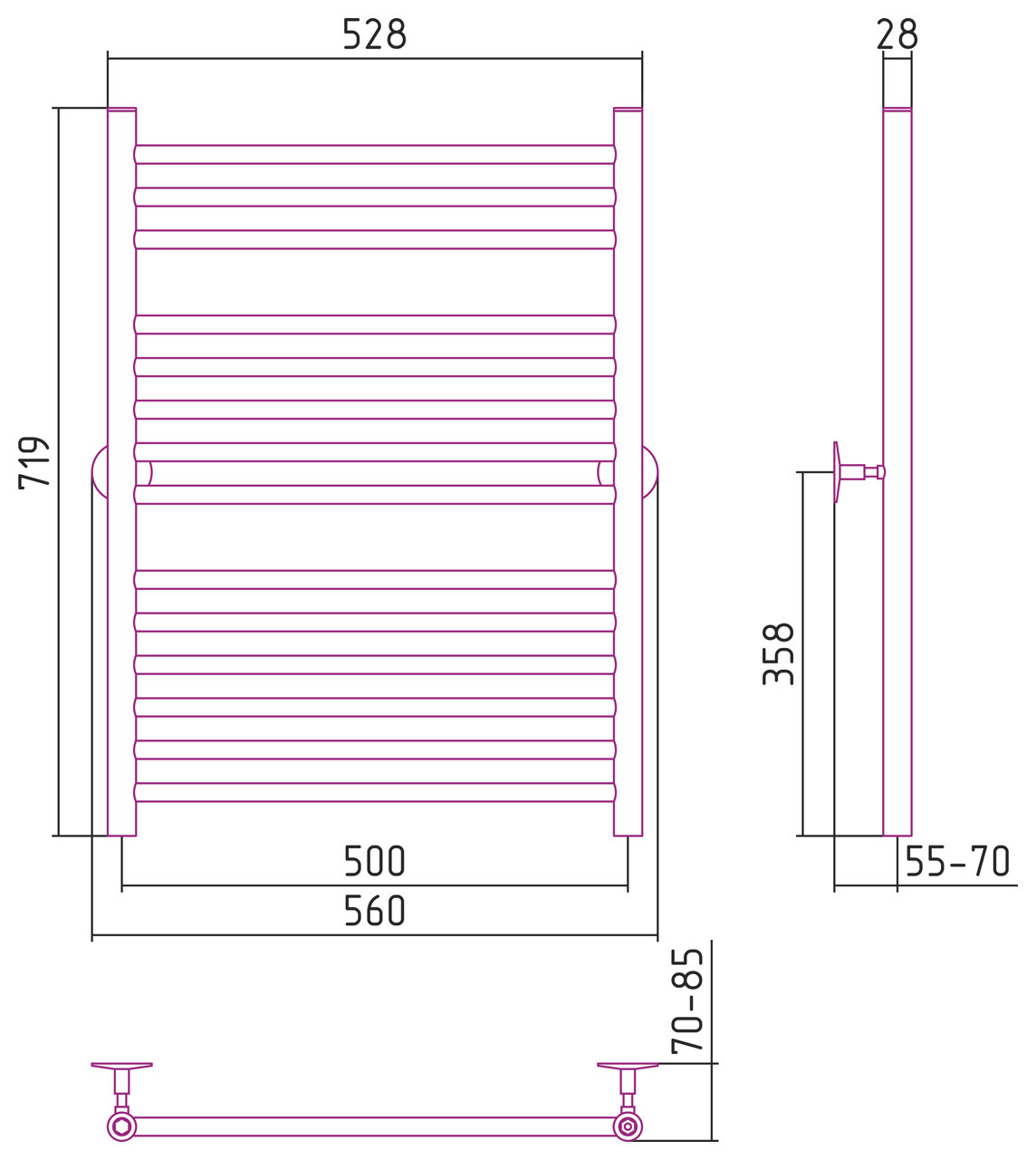 Полотенцесушитель водяной Стилье Универсал-53 800х500 (3+5+6) П 18 информация: