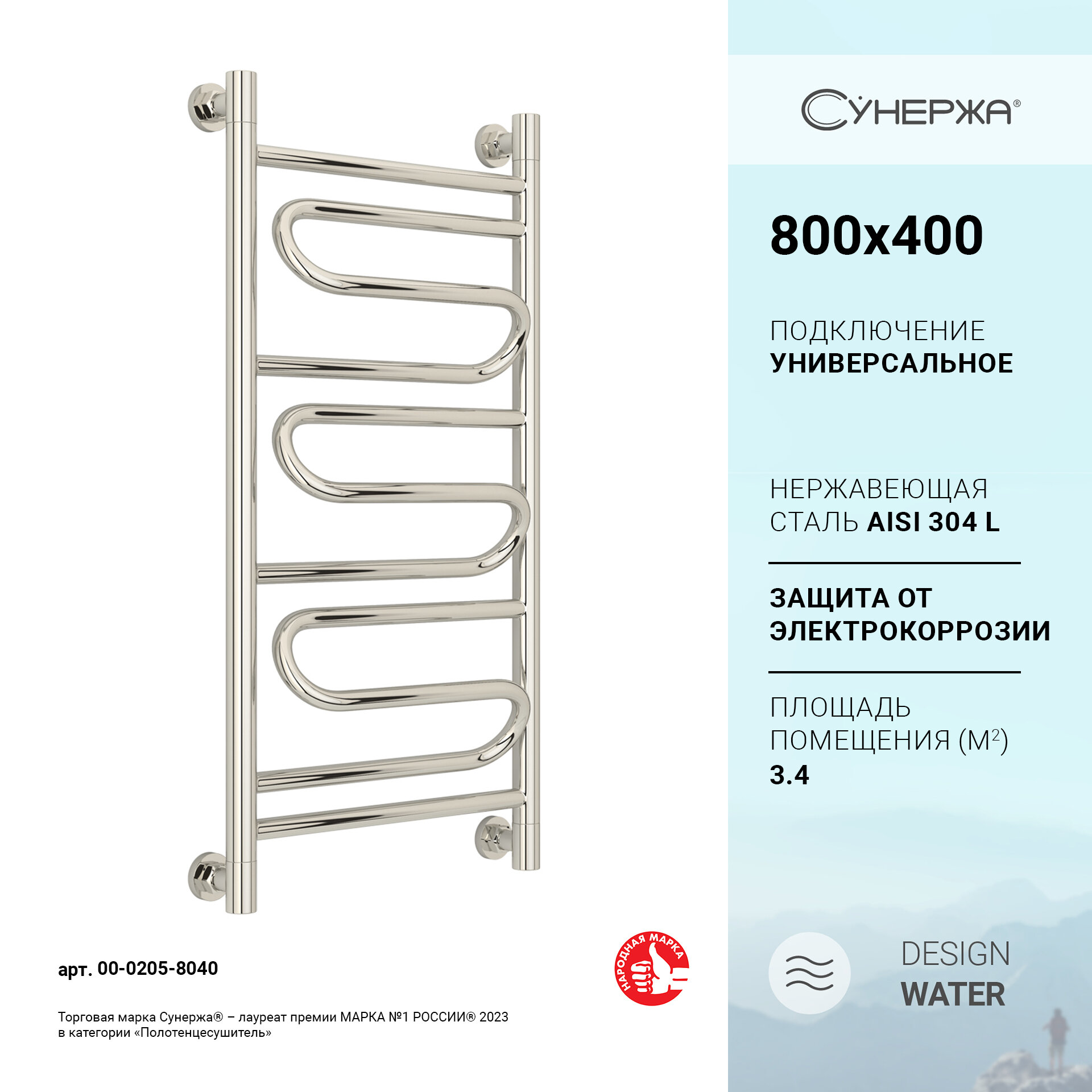 Полотенцесушитель водяной Сунержа Элегия+ 800х400, арт. 00-0205-8040 информация: