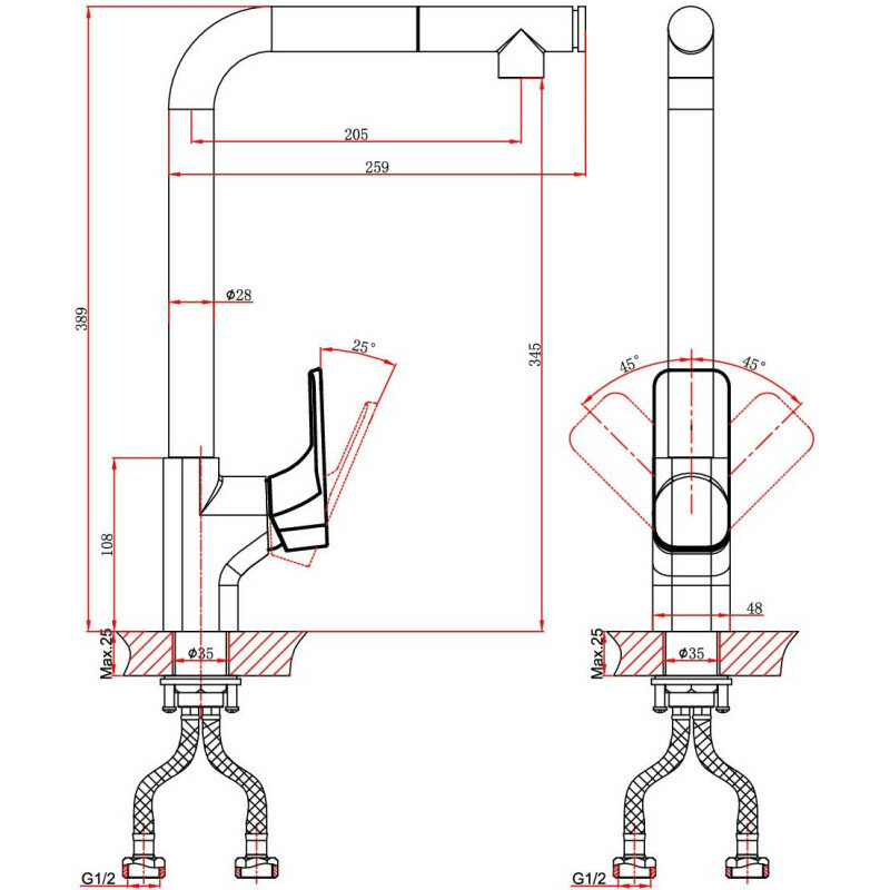 | Высота излива | 345 мм / 389 мм |