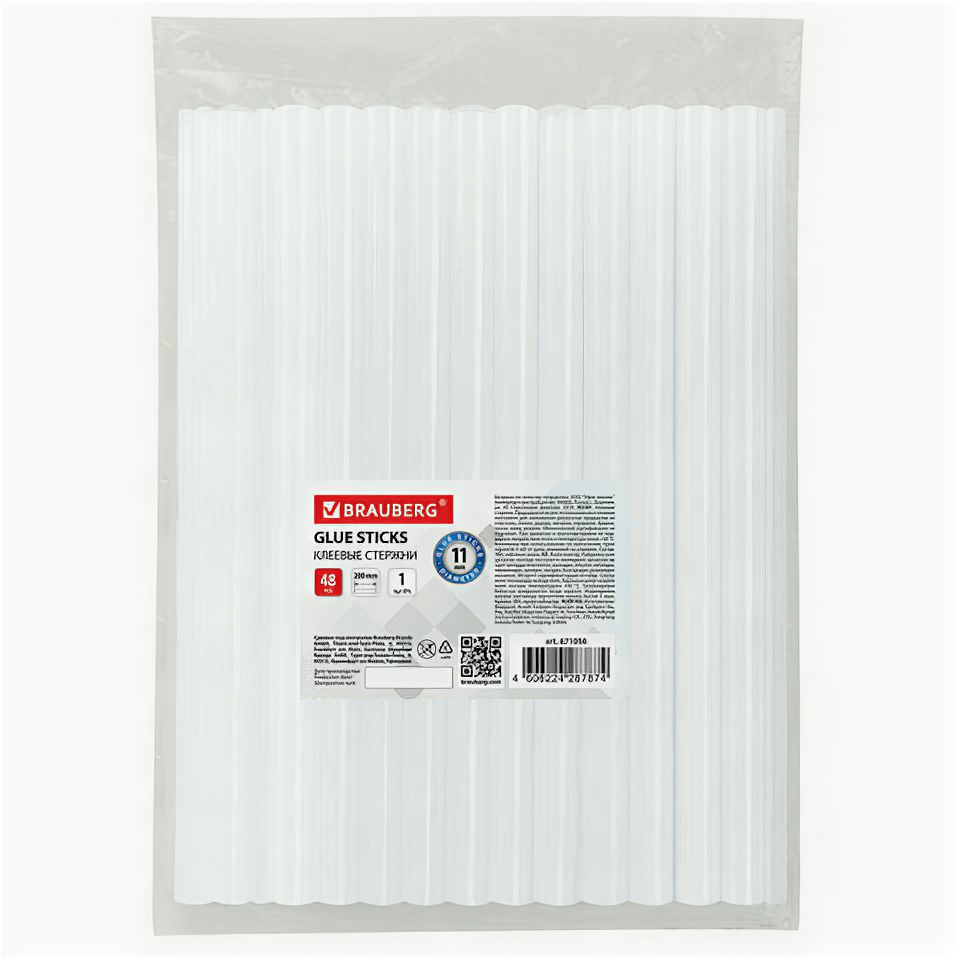 BRAUBERG Клеевые стержни, диаметр 11мм, длина 200мм, прозрачные, 1кг., 48 штук, 671056