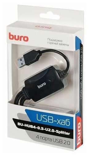 Разветвитель USB 2.0 Buro BU-HUB4-0.3-U2.0 Splitter черный информация: