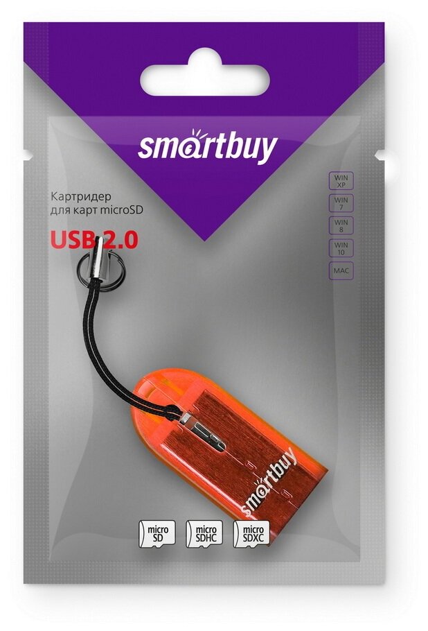 10 цен на Картридер Smartbuy 710, USB 2.0 - MicroSD, оранжевый