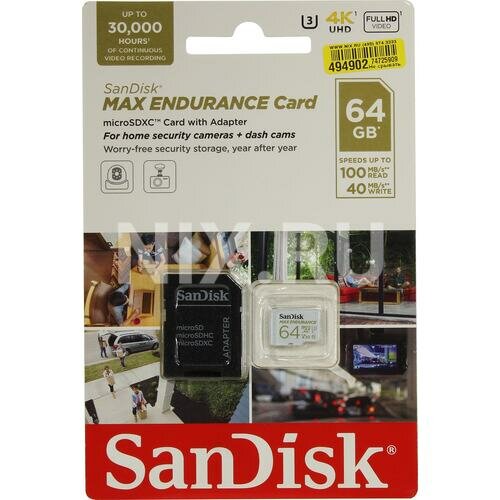 10 цен на Флеш карта microSD 64GB SanDisk microSDXC Class 10 UHS-I U3 V30 Max Endurance Video Monitoring SDSQQVR-064G-GN6IA
