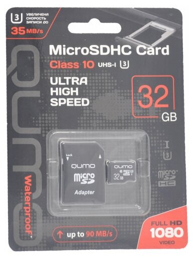 Карта памяти Micro SecureDigital 32Gb Qumo UHS-I 3.0 ( QM32GMICSDHC10U3 ) адаптер SD информация: