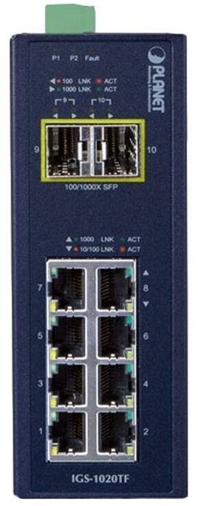 Коммутатор Planet IP30 Industrial 8-Port 10/100/1000T + 2xSFP (IGS-1020TF)