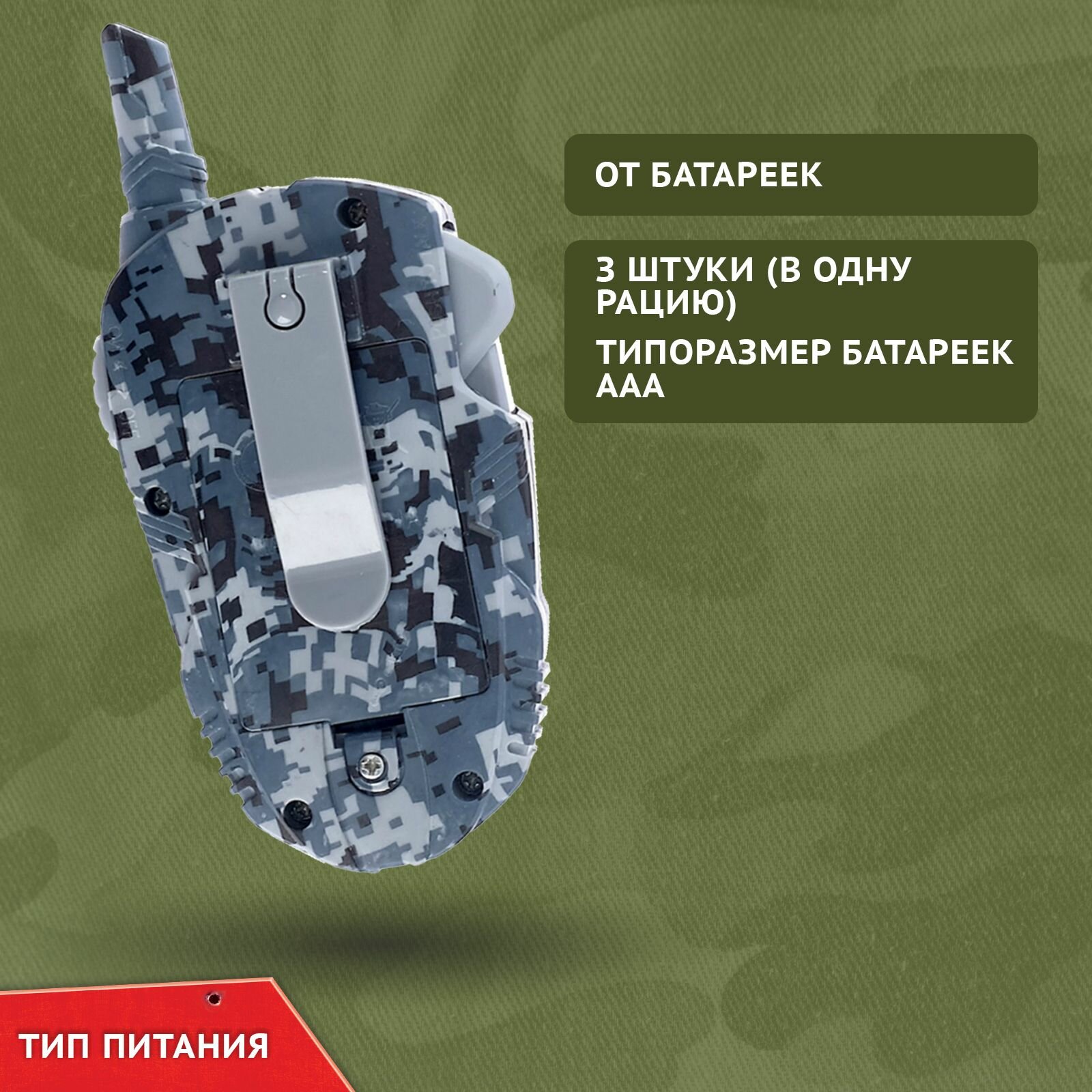 Набор раций "Отряд Альфа", без шума, дистанция до 400 метров, работает от батареек информация: