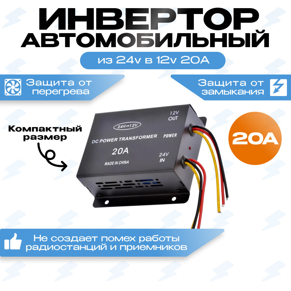 10 цен на Автомобильный преобразователь напряжения (инвертор) 24-12v 20А