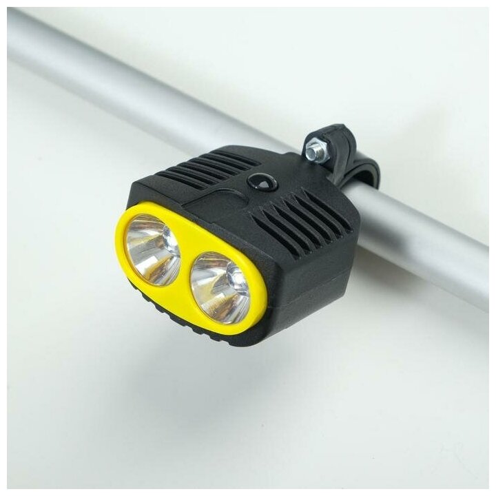 10 цен на Фонарь велосипедный 3 Вт, 3 батарейки 3 ААА, 2 led, 1 режим, 6х5 см
