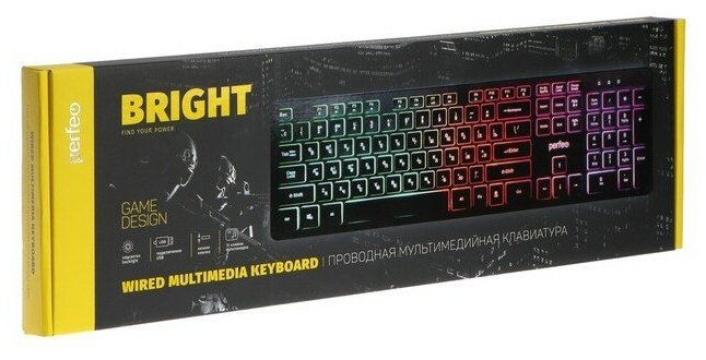 Клавиатура Perfeo "BRIGHT", GAME DESIGN, низкие кн.,подсветка, USB, чёрный информация: