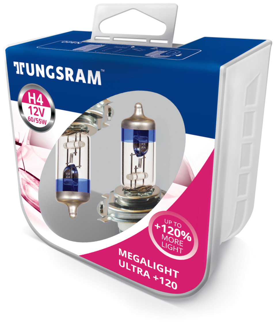 Отзывы на Лампа Автомобильная H4 12v- 60/55w (P43t) Megalight Ultra +130 (Блистер 2шт.) (Tungsram) TUNGSRAM арт. 50440XNUBL2