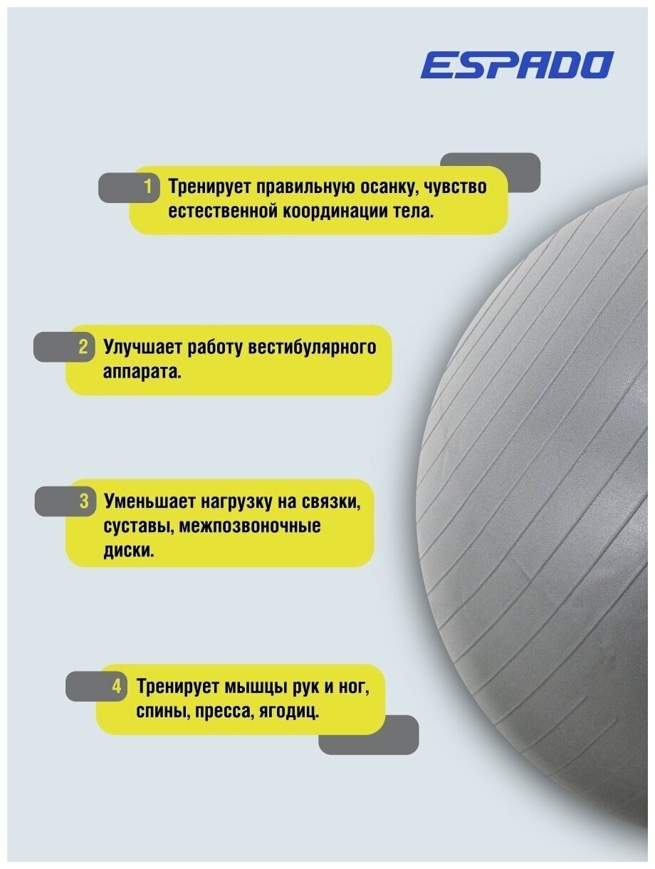 Мяч гимнастический ESPADO 55см, антивзрыв, серый ES2111 1/10 - ESPADO информация:
