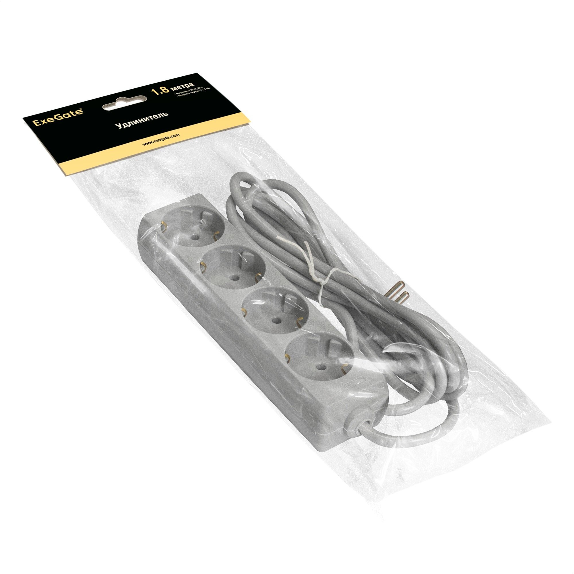 Удлинитель ExeGate Ece-4-1.8g 4 евророзетки с заземлением, 1.8м, серый 285811