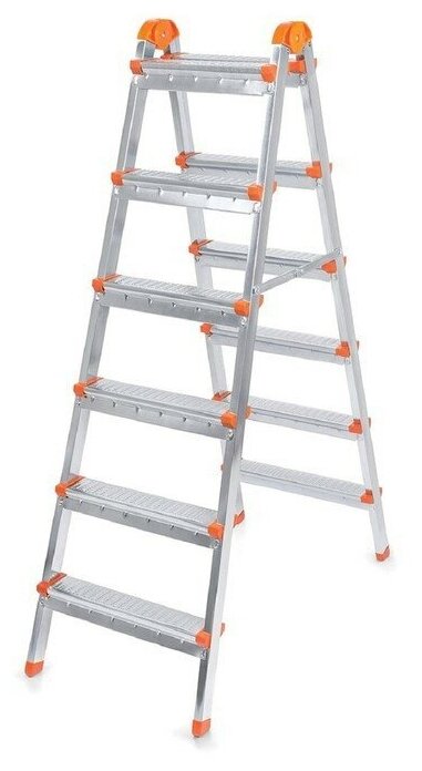 Стремянка стальная с алюминиевыми ступенями двухсторонняя Новая Высота NV 1140, 2х6 ступеней 80 мм