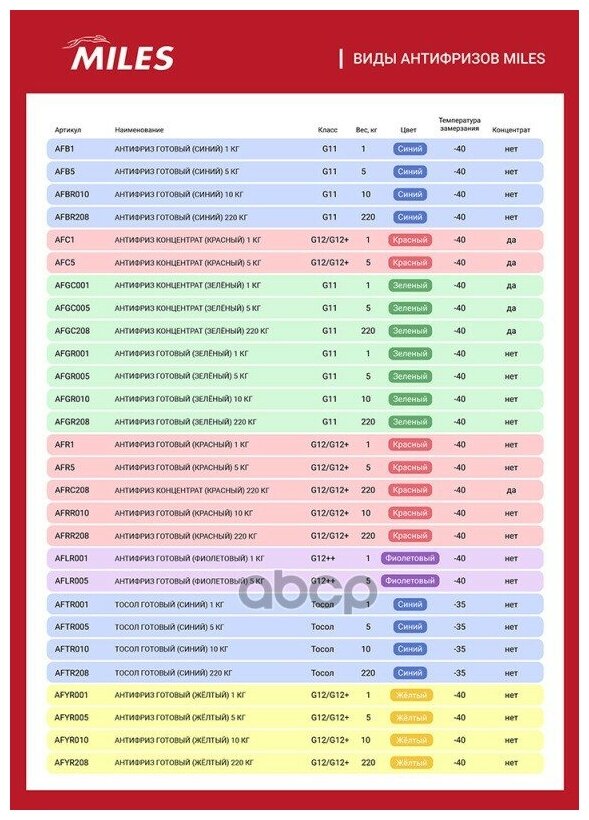 Антифриз MILES красный G12/G12+ готовый 1 кг